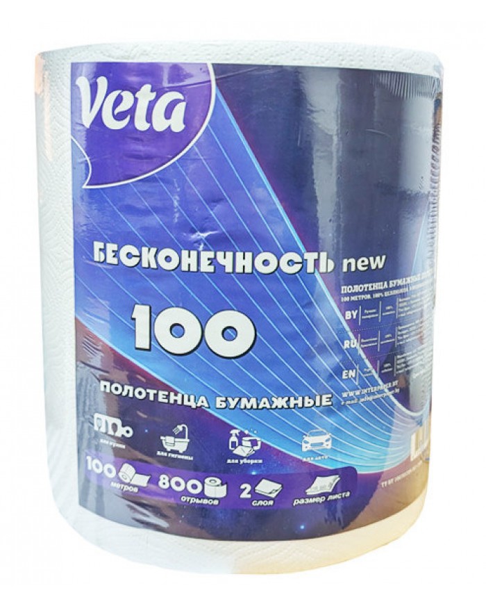 Полотенца бумажные 2-слойные "VETA Бесконечность NEW" 100метров, 800отрывов,100% целлюл, 22,5х12,5см