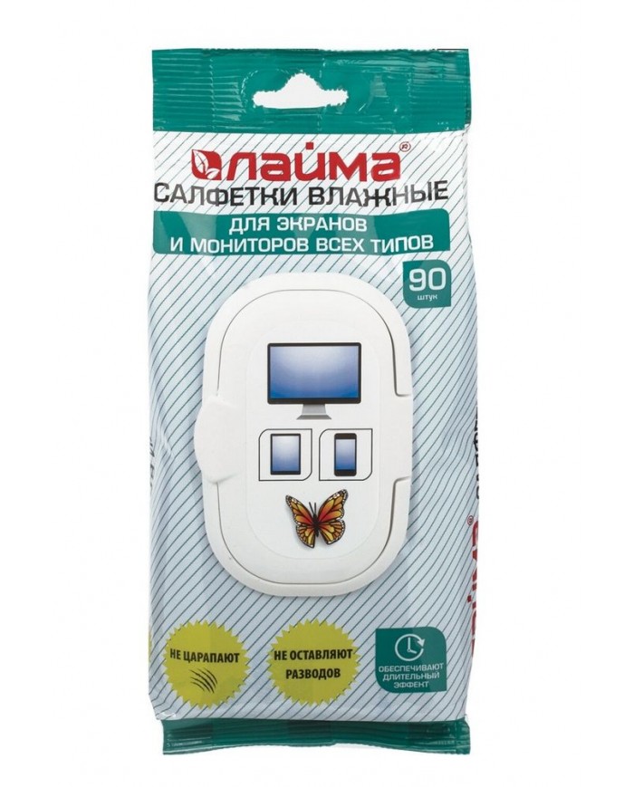Салфетки влажные LAIMA "ДЛЯ ЭКРАНОВ всех типов и ОПТИКИ (очки, объективы)", клапан, 90 штук,