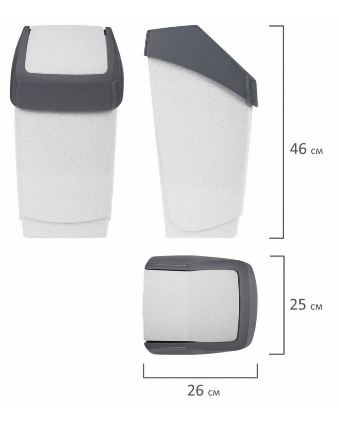Ведро мусорное с КРЫШКОЙ (качающейся) 15 литров, "ХАПС", 46х26х25 см, серое, IDEA,