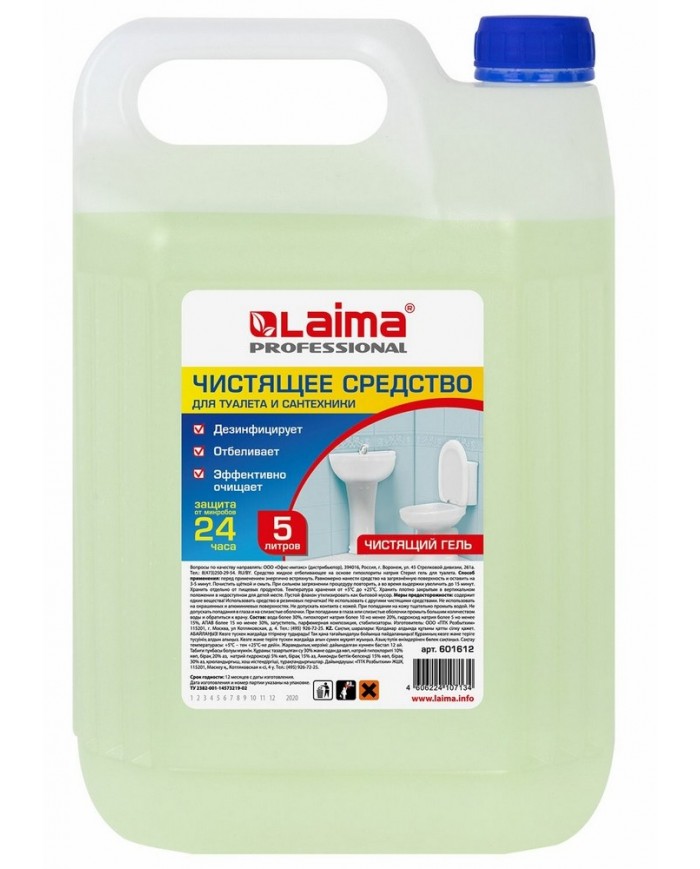 Средство для уборки туалета 5 л, ЛАЙМА PROFESSIONAL, гель с отбеливающим эффектом,