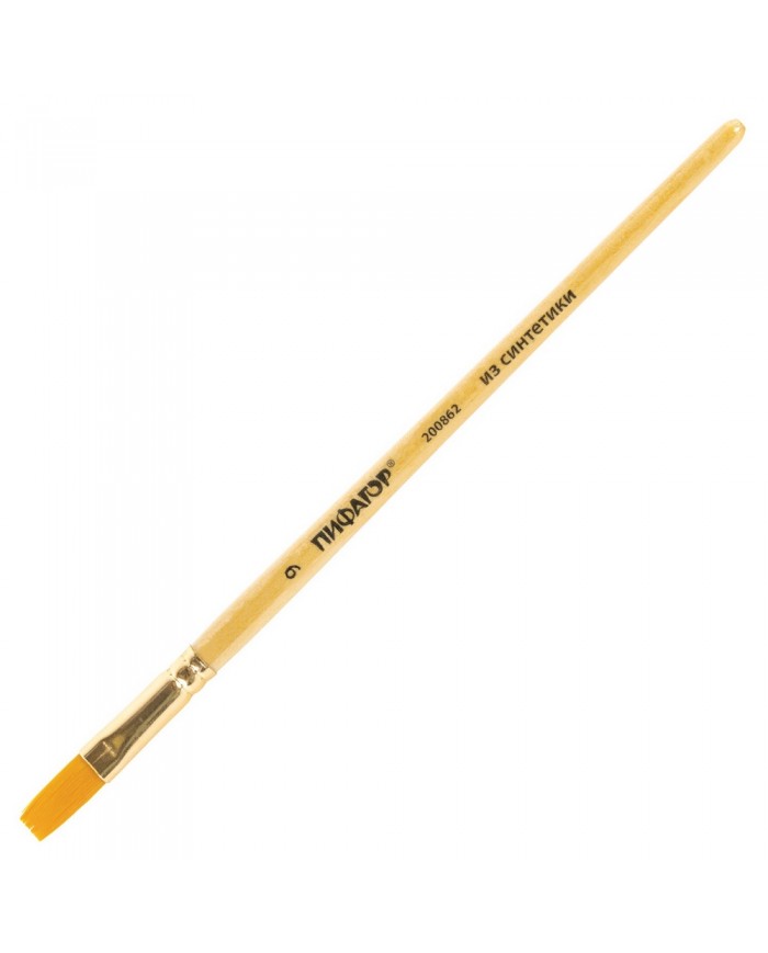 Кисть ПИФАГОР, СИНТЕТИКА, плоская, № 9, деревянная лакированная ручка, с колпачком, пакет с подвесом