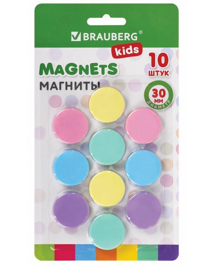 Магниты 30 мм, НАБОР 10 шт., "MACAROONS", BRAUBERG KIDS, блистер,