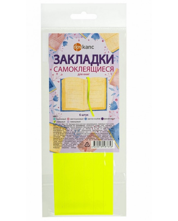Закладки для книг САМОКЛЕЯЩИЕСЯ, КОМПЛЕКТ 6 шт., лаймовый, ДПС,
