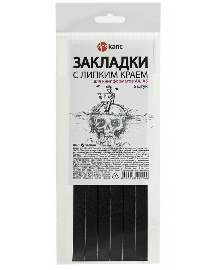 Закладки для книг САМОКЛЕЯЩИЕСЯ, КОМПЛЕКТ 6 шт., черный, ДПС,