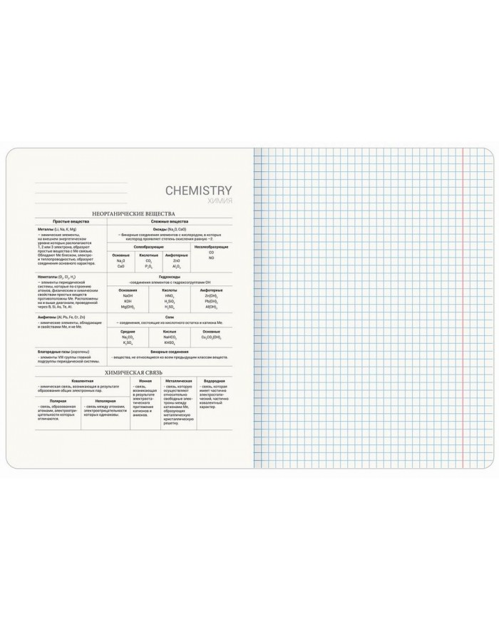 Тетрадь предметная CLASSIC 48 л., рельефный картон, матовая ламинация, ХИМИЯ, клетка, подсказки