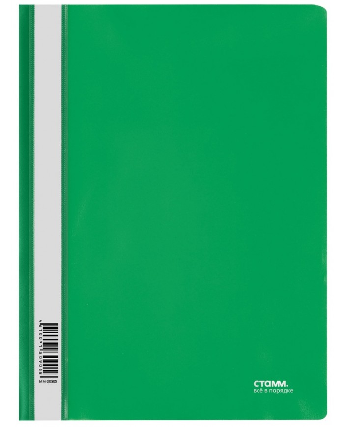 Папка-скоросшиватель пластик. СТАММ А4, 180мкм, зеленая с прозр. верхом