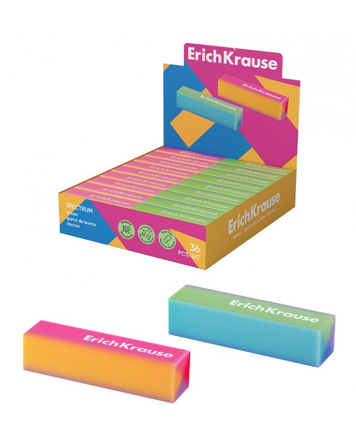 Супермягкий ластик прямоугольной формы из современного, экологически чистого и гипоаллергенного материала ЭКО-ПВХ. Хорошо удаляет надписи и рисунки, сделанные чернографитным карандашом, не пачкая и не деформируя бумагу. Не содержит фталатов. Размер 60 х 15 х 15 мм.