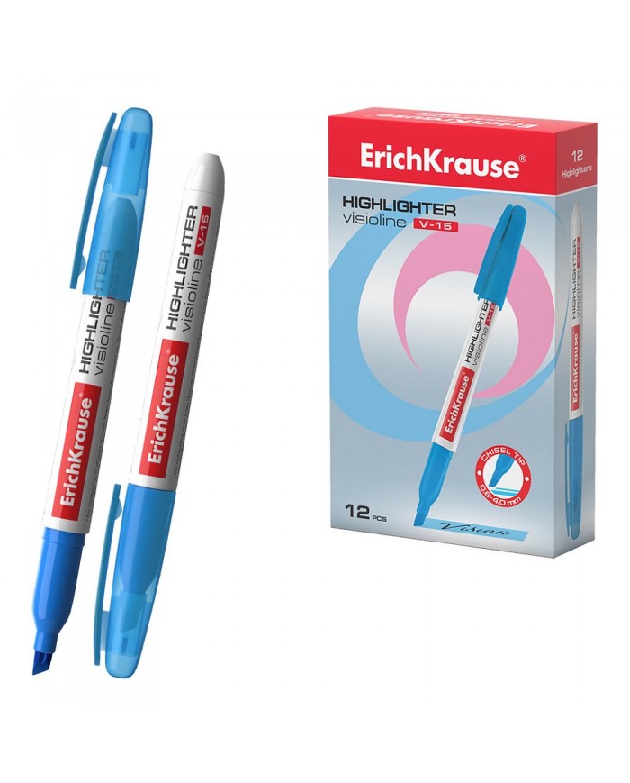 Текстовыделитель ErichKrause Visioline V-15 Neon, цвет чернил голубой 0,6-4мм