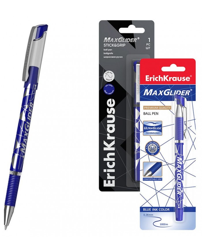 Ручка шарик. С резин.хватом ErichKrause MaxGlider® Stick&Grip 0.7, линия 0,28, Ultra Glide Technolog