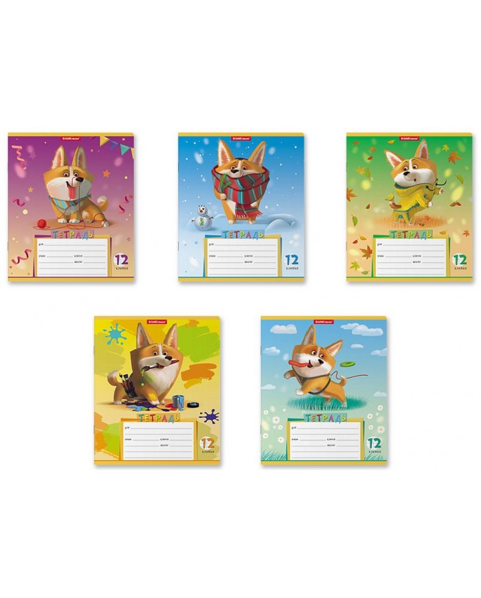 Тетрадь А5 12л, ErichKrause Корги, клетка , обложка-картон