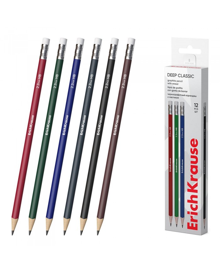 Карандаш чернографитный ErichKrause Deep Classic triangular, трехгранный, с ластиком, HB