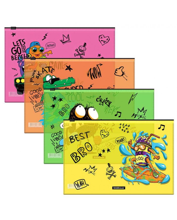 Папка-конверт на молнии Zip-пакет пластиковый ErichKrause® Funny Monsters, B5 ассорти