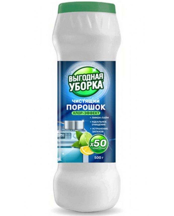 Основные преимущества: - не оставляет царапин, - идеальное очищение. Способ применения: нанести на влажную губку или непосредственно на загрязнённую поверхность, почистить и смыть водой. Меры предосторожности: необходимо избегать попадания порошка в глаза и на кожу, а также не вдыхать его, поэтому рекомендуется использовать резиновые перчатки и, при необходимости, защитную маску. При попадании в глаза или на кожу следует немедленно промыть пораженный участок большим количеством воды. Состав: карбонат кальция (30% и более), карбонат натрия (менее 5%), анионный ПАВ (менее 5%), гипохлорит кальция (менее 5%), триполифосфат натрия (менее 5%), парфюмерная композиция (менее 5%). Условия хранения: температурный режим не ограничен. Хранить в сухом месте!