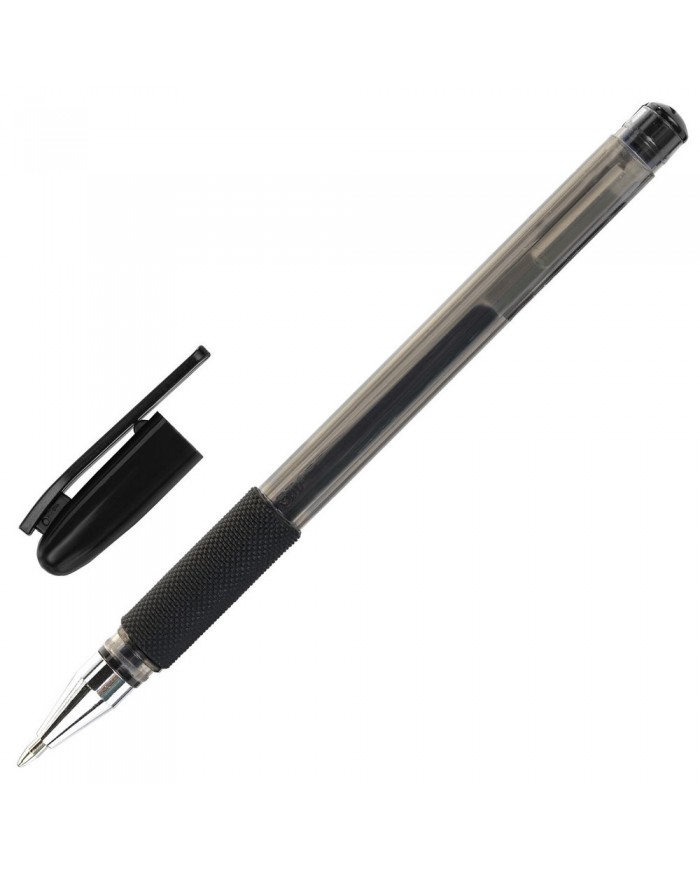 Ручка гелевая с грипом STAFF "Basic" GP-677, ЧЕРНАЯ, корпус тонированный, узел 0,5 мм, линия письма