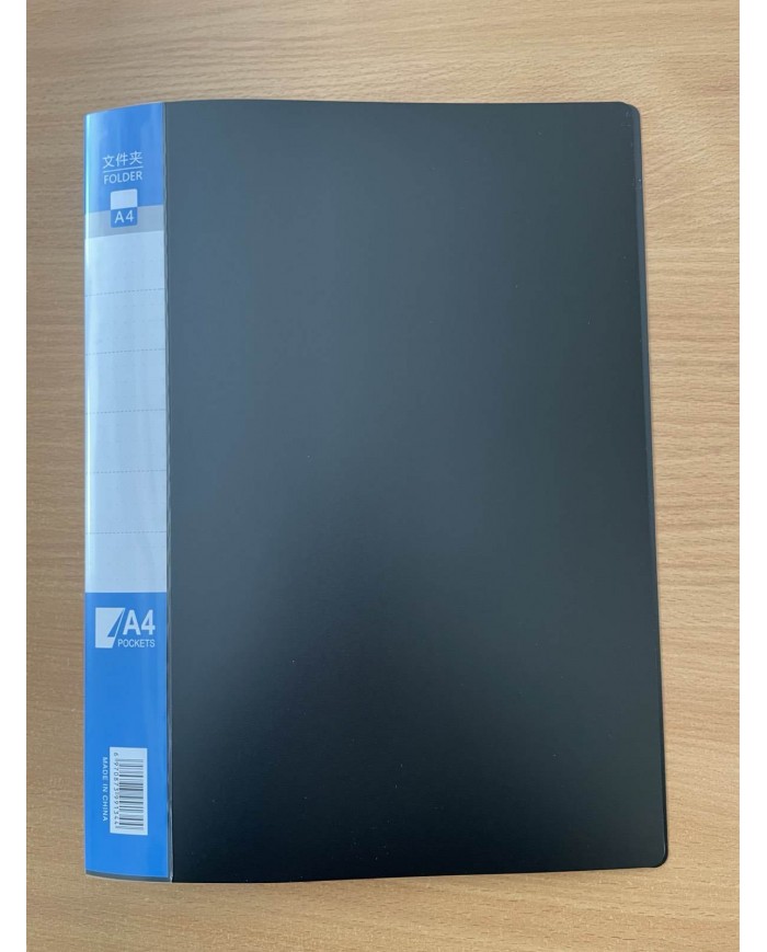 Папка с металлическим пружинным скоросшивателем и внутренним карманом, A4, черная, пластик 0.7мм.,