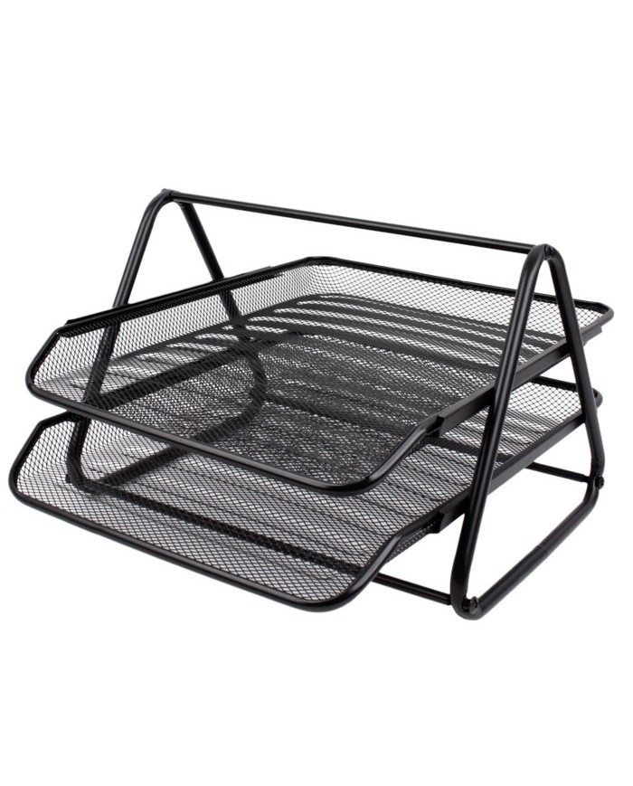 Лоток горизонтальный металлический для бумаг, 2 секции, А4 (175х355х295 мм), черный,