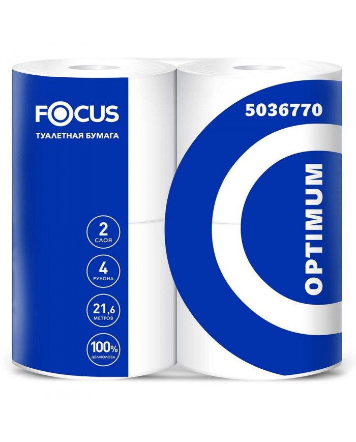 Бумага туалетная, спайка 4 шт., 2-слойная (4х21,6 м), FOCUS Optimum, белая,