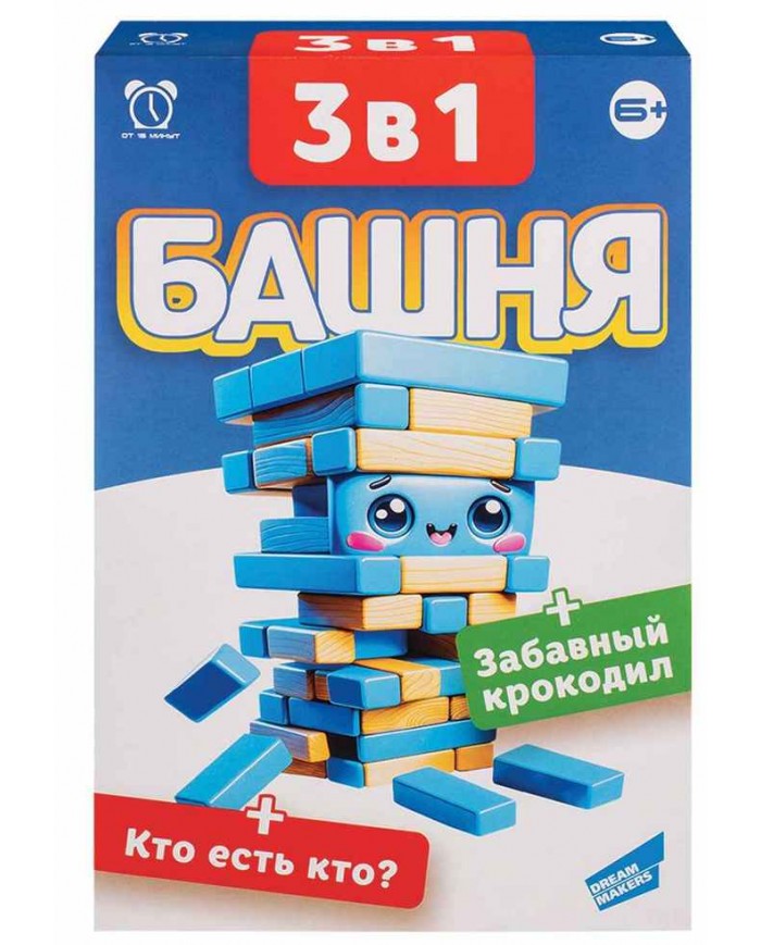 Игра детская настольная "3 в 1. Башня. Забавный крокодил. Кто есть кто?", DREAM MAKERS-BOARD GAMES