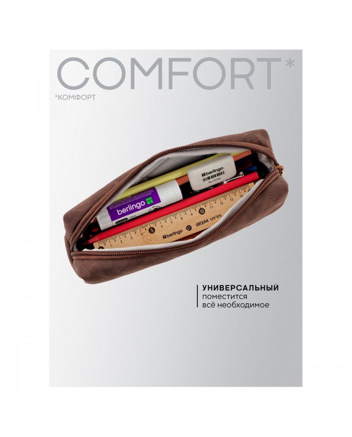 Пенал-косметичка 1 отделение, 210*50*60 мм, Berlingo, "Brown shades", полиэстер