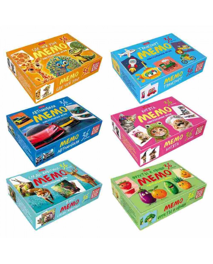 Набор содержит 36 карточек, разделенные на 18 пар, на которых изображены различные рисунки. Карточки запечатанные с двух сторон, скругленные углы обеспечивают безопасность во время игры. Правила и варианты игр указаны на обороте. Компактная эргономичная упаковка, которую всегда можно взять с собой. Картонная коробка с глянцевой ламинацией размером 143х102х38 мм. Продукция соответствует стандартам качества.