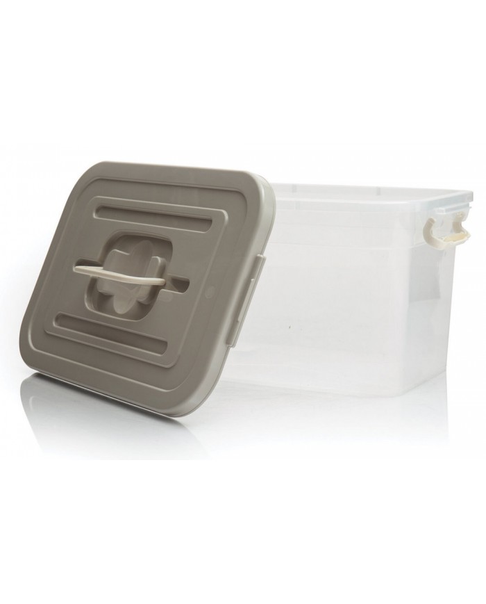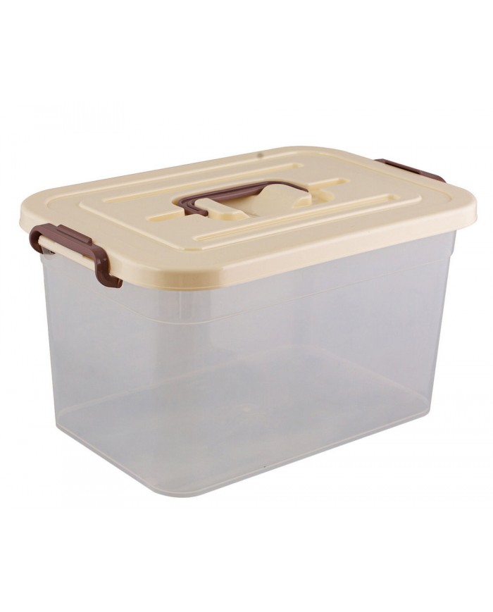 Ящик-контейнер 10 л с КРЫШКОЙ НА ЗАЩЕЛКАХ И РУЧКОЙ, 19х35х23 см, пластик, прозрачный, крышка ассорти