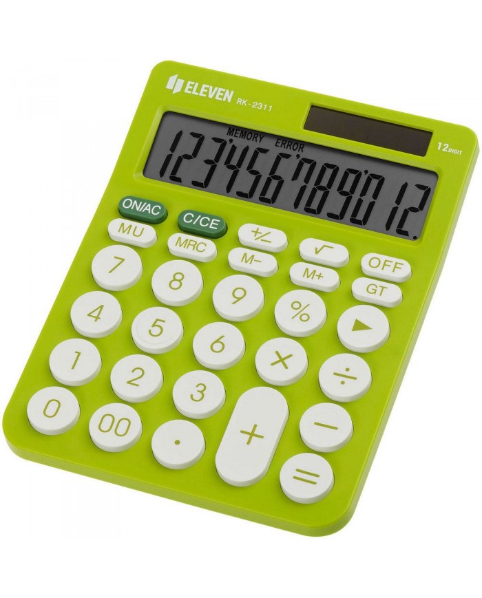 12-ти разрядный настольный калькулятор Eleven RK-2311-GN предназначен для выполнения арифметических операций. Размер калькулятора – 143*192*26 мм, вес – 188,6 г, цвет – салатовый. Незаменимый помощник в офисе, школе и дома. Оптимальный набор функций поможет автоматизировать расчёты: коррекция последнего введенного значения, расчёт наценки, кнопка «00», функция итогового суммирования. Двойное питание (солнечная батарея + батарея LR1130) и автоматическое отключение увеличивают срок службы. Упакован в картонную коробку. Гарантия – 5 лет.