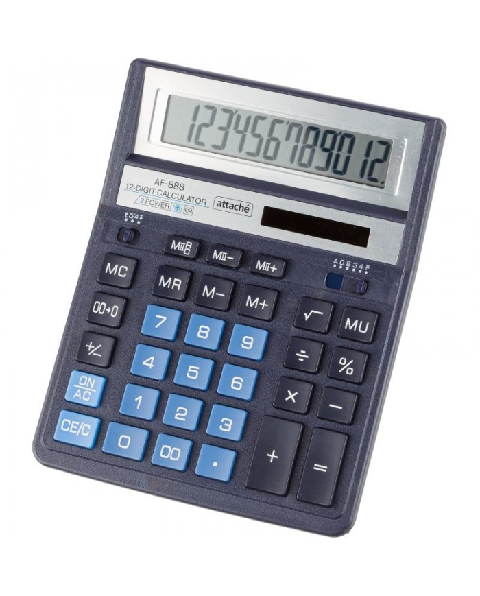 Калькулятор Attache настольный в пластиковом корпусетемно-синего цвета с 12-разрядным ЖК-дисплеем. Имеет оптимальный набор вычислительных функций: основные математические операции, расчет процентов, расчет наценки, извлечение квадратного корня, запоминание промежуточных результатов. Калькулятор имеет функцию автоматического отключения питания. Удобная клавиатура снабжена кнопкой ввода двойного нуля. В калькуляторе имеется два источника питания: солнечная батарея и батарейка G10(не подлежит замене), а так же есть место для установки батареи AA (не входит в комплект). Совместимые батарейки находятся в разделе 'Расходные материалы'. Размер корпуса: 204x158x32 мм. Размер дисплея: 111x24 мм. Материал кнопок клавиатуры: пластик. Перед использованием внимательно ознакомьтесь с инструкцией. Обращаем внимание, что батарейка не входит в комплектацию данного калькулятора. Cовместимые батарейки находятся в разделе 'Расходные материалы'. Перед применением необходимо снять защитную пленку с металлической панели. Внешний вид и/или характеристики товара могут быть изменены производителем в соответствии с производственным процессом.