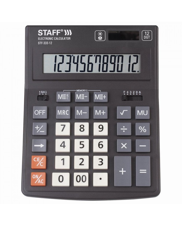 Калькулятор настольный STAFF PLUS STF-333 (200x154 мм), 12 разрядов, двойное питание