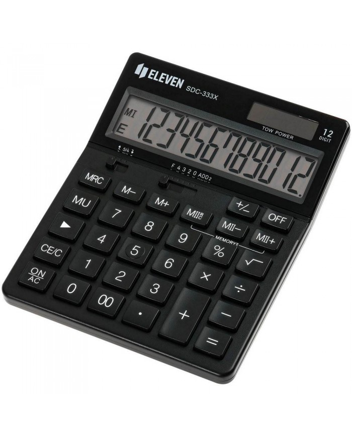 12-ти разрядный настольный калькулятор Eleven SDC-333X-BK предназначен для выполнения арифметических операций. Размер калькулятора – 125*155*31 мм, вес – 151,8 г, цвет – черный. Незаменимый помощник в офисе, школе и дома. Оптимальный набор функций поможет автоматизировать расчёты: коррекция последнего введенного значения, расчёт наценки, кнопка «00», двойная память. Двойное питание (солнечная батарея + батарея LR44) и автоматическое отключение увеличивают срок службы. Упакован в картонную коробку. Гарантия – 5 лет.