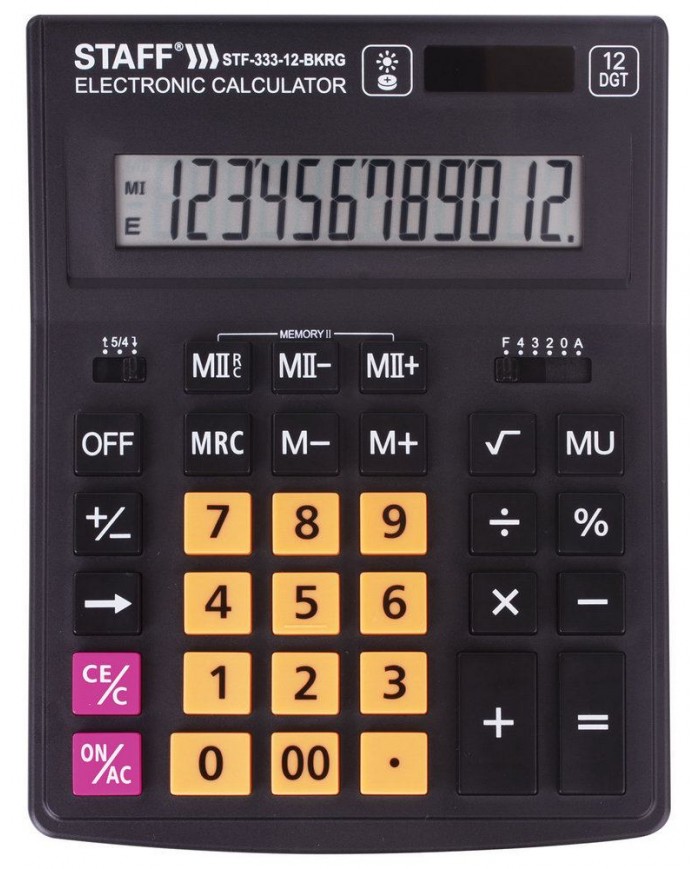 Калькулятор настольный STAFF PLUS STF-333-BKRG (200x154 мм) 12 разрядов, ЧЕРНО-ОРАНЖЕВЫЙ