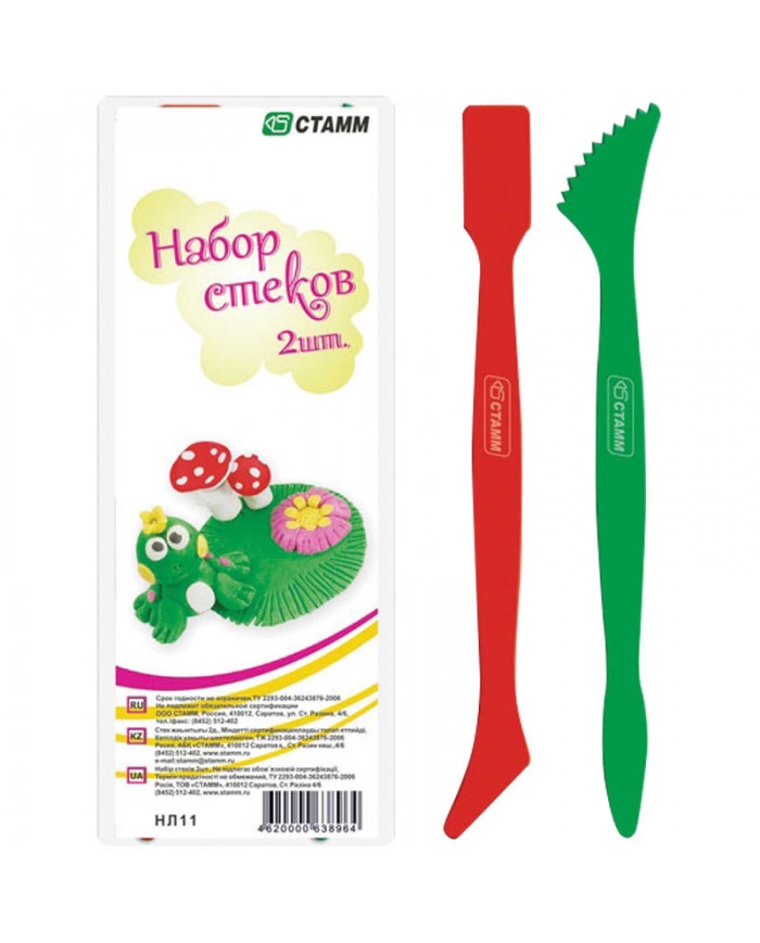 Набор стеков, 2шт разной формы. Инструменты для детского творчества, предназначены для более точной проработки деталей, а также создания и формирования фигур из любых материалов для лепки. Стеки разной формы могут использоваться многократно, не имеют срока годности. Упакованы в пакет с европодвесом.