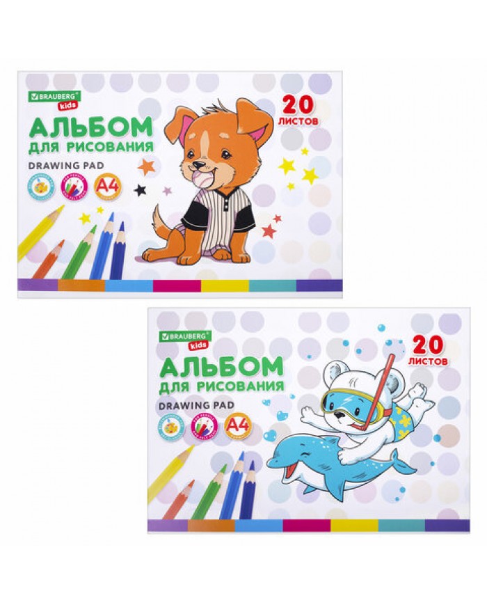 Альбом для рисования А4 20 л., скоба, обложка картон, 203х288 мм, "Пёсик", 2 вида