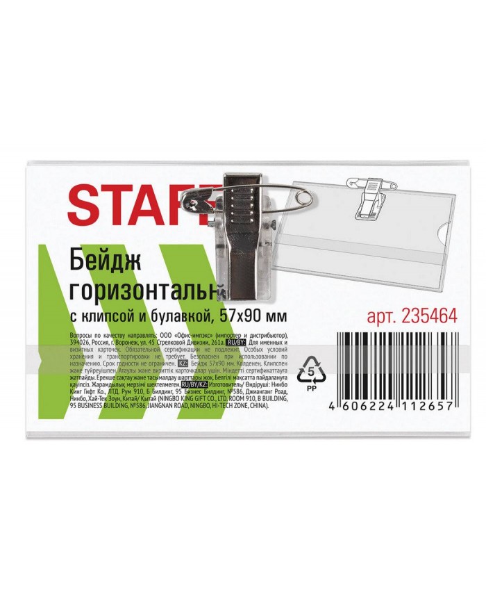 Закрепляется на одежде при помощи клипсы или булавки. Размер вкладыша – 57х90 мм. Это товар эконом-сегмента, поэтому он отличается привлекательной ценой. Товар обладает базовым набором характеристик и простой упаковкой, при этом полностью соответствует основным требованиям потребителей.