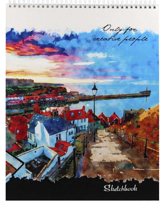 Скетчбук А3, 100г, 30л, ПРИМОРСКИЙ ГОРОД, гребень, жесткая подложка