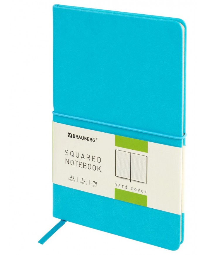 Блокнот А5 (148x218 мм), BRAUBERG "Metropolis X", под кожу, 80 л., резинка, клетка, бирюзовый,