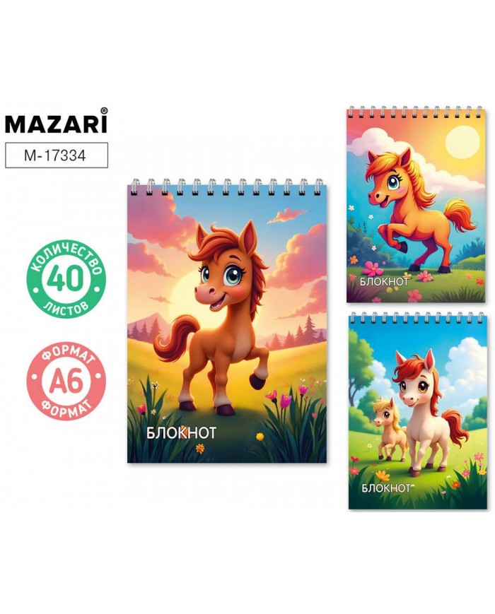 Блокнот А6, 40 л., обложка картон, блок офсет, клетка, на спирали, ассорти 3 дизайна
