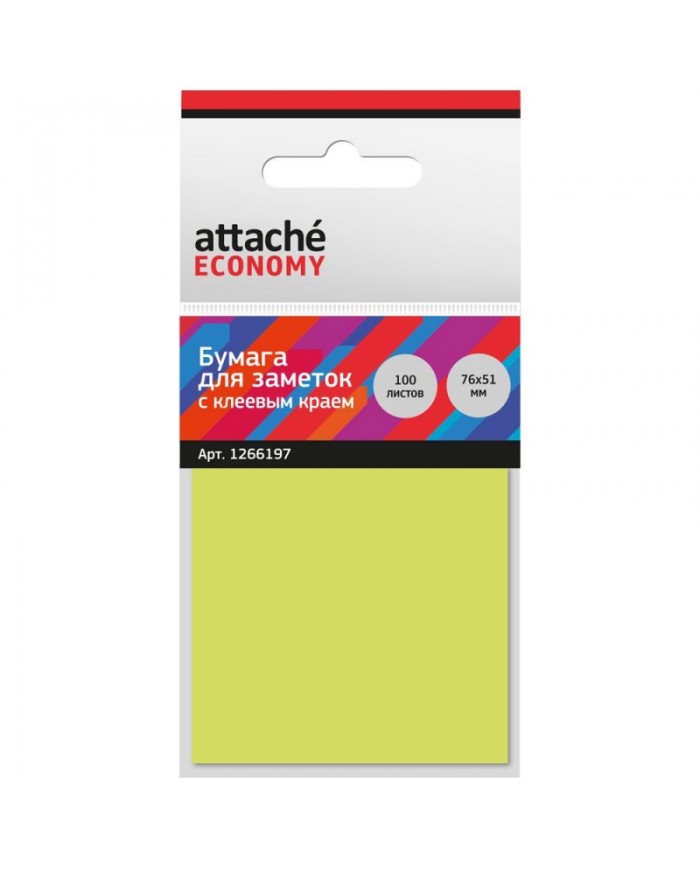 Стикеры Attache Economy идеально подойдут для сотрудников творческих профессий и руководителей: рекомедуются для использования в процессе совещаний, обучения, мозговых штурмов. Формат: 76x51 мм. Клеевая система - 16 Н/м. Длина клейкой стороны 76 мм. В упаковке 1 блок из 100 листов. Цвет: неоновый желтый. Товар относится к сегменту "суперэконом", при этом отвечает всем основным характеристикам. Это оптимальное соотношение стоимости и качества для тех, кто хочет сэкономить. Особых условий хранения не требует, сертификации не подлежит, срок годности не ограничен.