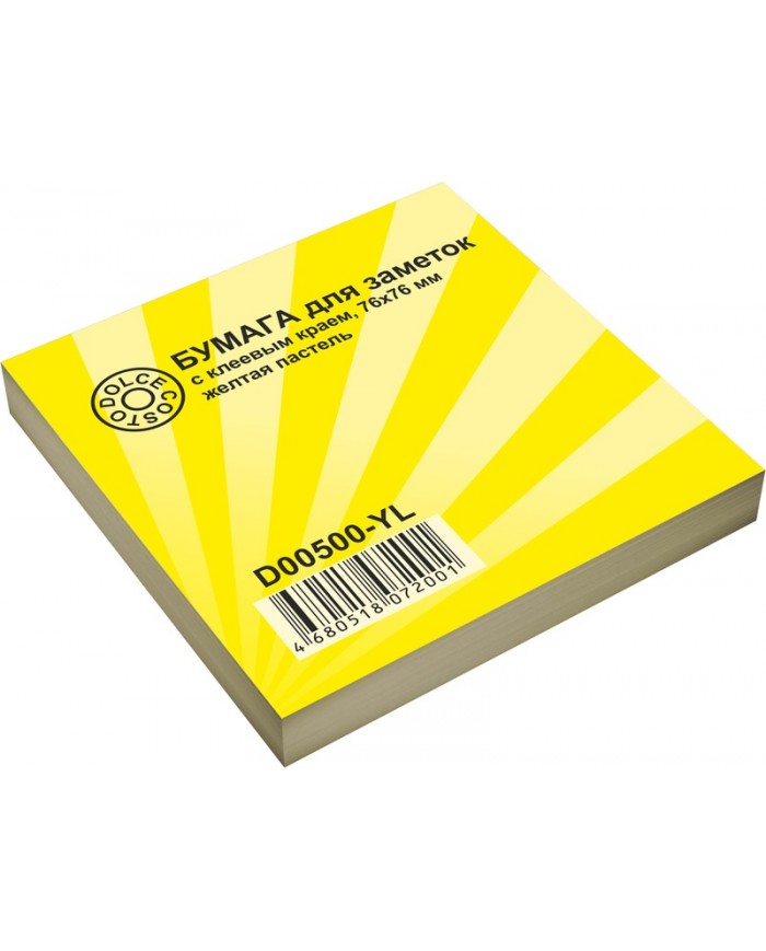 Бумага для заметок DOLCE COSTO с клеевым краем Эконом, 76х76 мм, 100л, желтая пастель