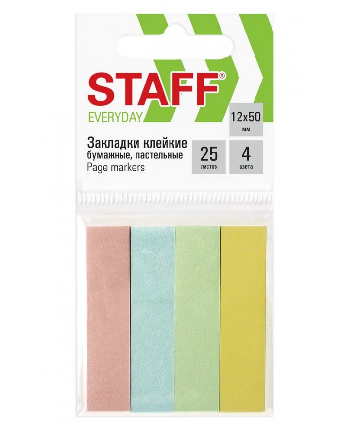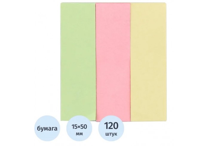 Набор бумажных закладок 4 пастельных цветов размером 50х12 мм состоит из 100 листов, по 25 закладок каждого цвета. Клейкий слой - 22 Н/м. Легко клеятс..
