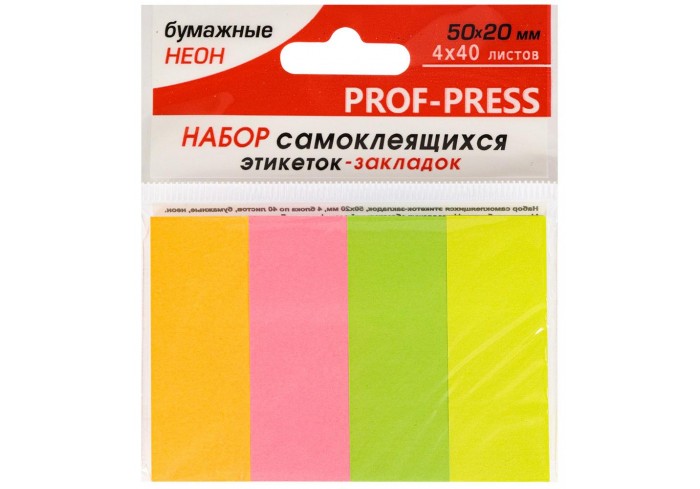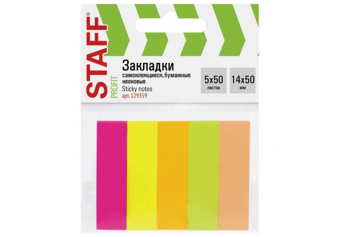 Набор бумажных закладок 5 неоновых цветов размером 50х14 мм состоит из 250 листов, по 50 закладок каждого цвета. Клейкий слой - 22 Н/м. Легко клеятся ..