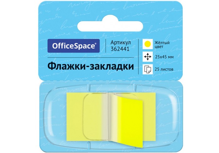 Флажки-закладки пластиковые самоклеящиеся OfficeSpace идеальны для наклеивания на различные типы поверхностей. Размер листа – 25*45 мм. В блоке 25 лис..