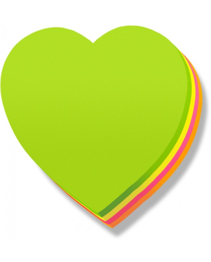 Бумага для заметок с клеевым краем фигурная Сердце 100 л., 4 цвета неон