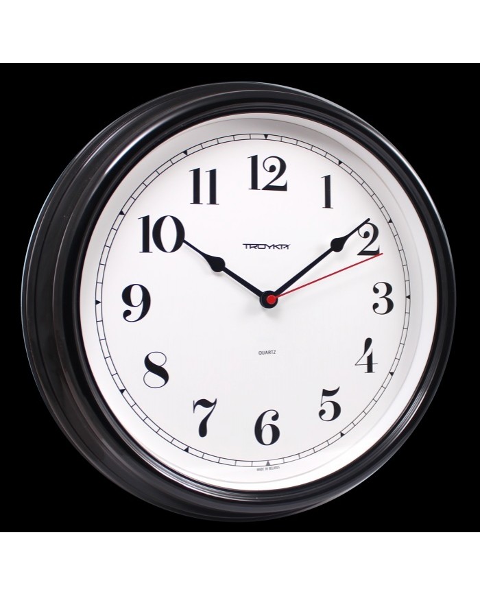 Настенные часы Тройка, черные, 310мм, кварцевый механизм с плавным ходом