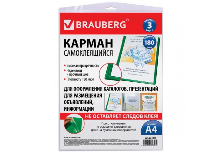 Выполнены из прочного ПВХ плотностью 110 микрон, имеют матовую фактуру и прочный шов. Клейкий прозрачный слой позволяет надежно разместить карманы на ..