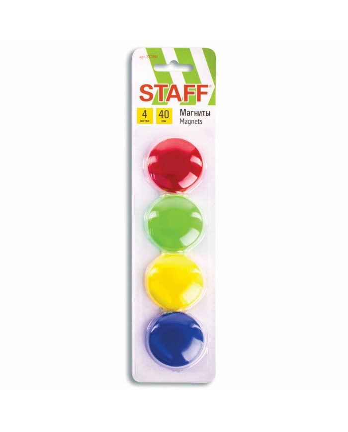 Магниты 40 мм, НАБОР 4 штуки, цвет АССОРТИ, в блистере, STAFF "Basic", 237484