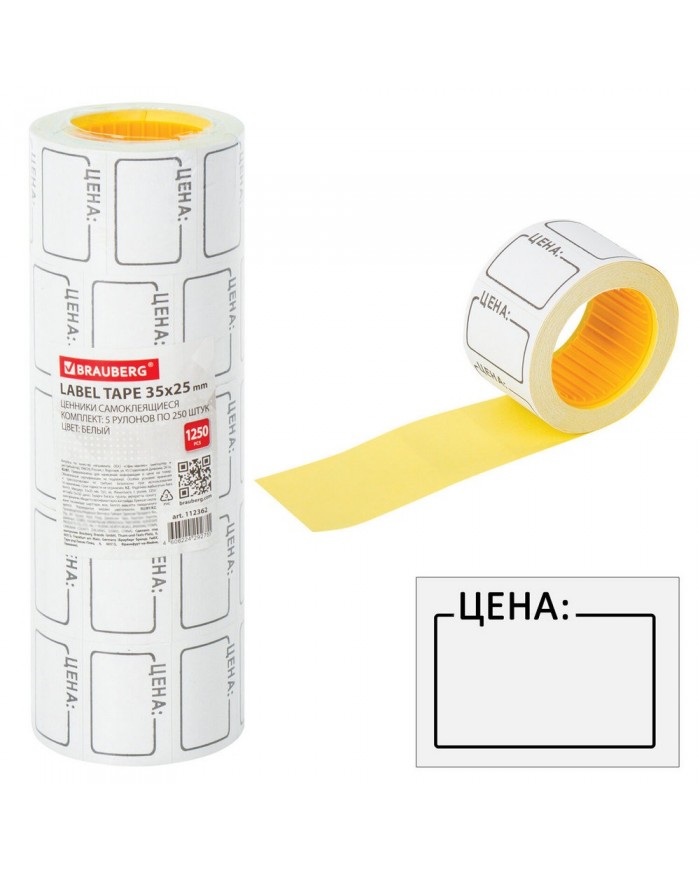 Ценник средний "Цена" 35х25 мм белый, самоклеящийся, по 250 шт., BRAUBERG,