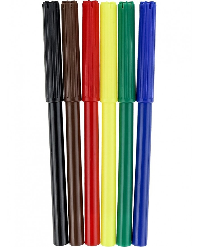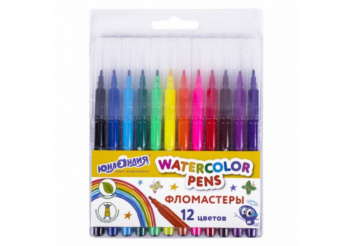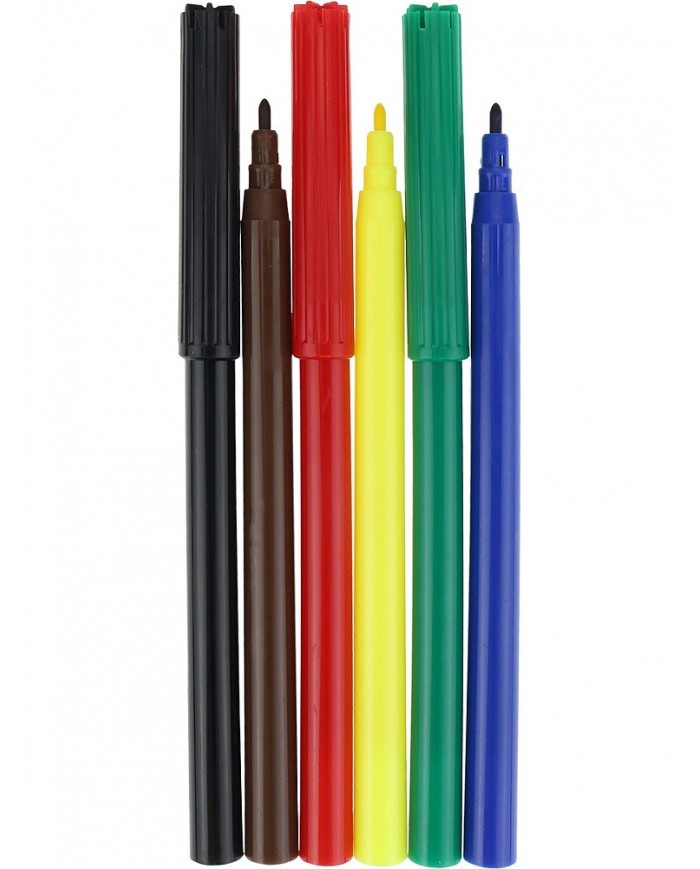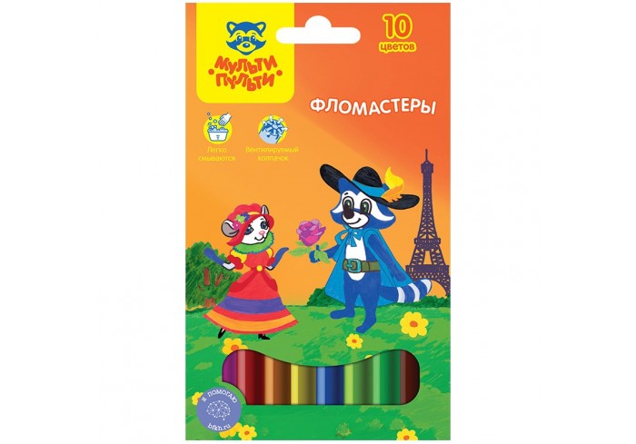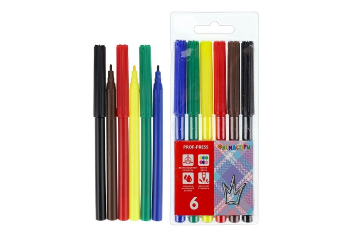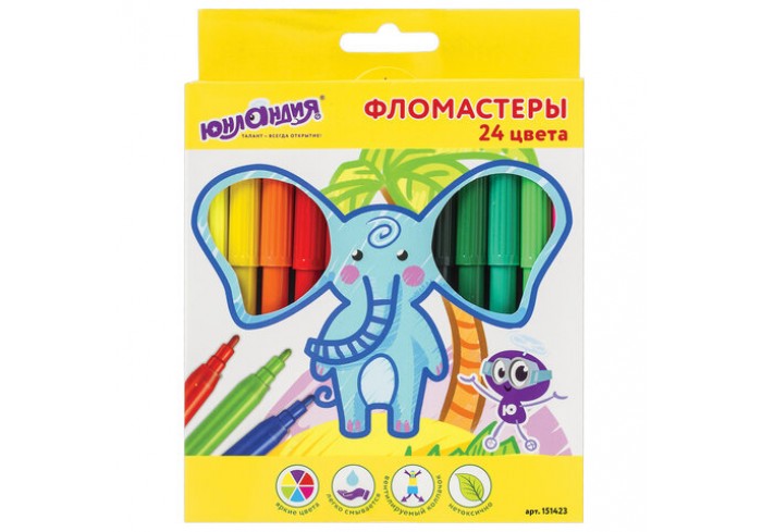 Легкосмываемые чернила, вентилируемый колпачок, нетоксичны, корпус изготовлен из полипропилена. Упакованы в картонную лакированную коробку с петлей-е..