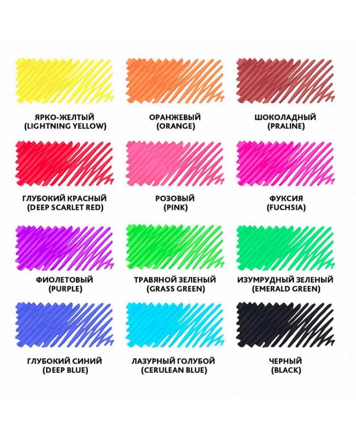 Обладают яркими насыщенными цветами в количестве 12 штук. Удобная круглая форма корпуса, длина которого 145 мм, а диаметр - 10,5 мм. Благодаря толщине..