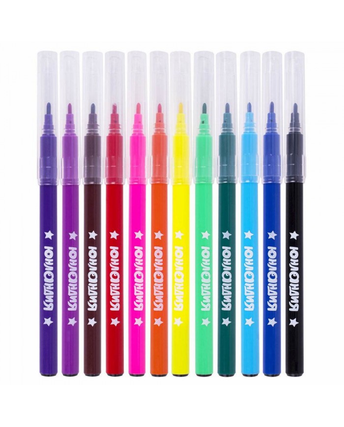 Обладают яркими насыщенными цветами в количестве 12 штук. Удобная круглая форма корпуса, длина которого 139 мм, а диаметр - 8,5 мм. Благодаря толщине ..