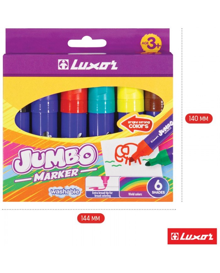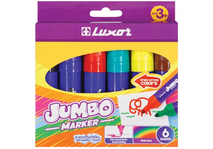 Набор фломастеров Luxor Jumbo с увеличенным диаметром корпуса подходит для самых юных художников. Толщина линии письма варьируется от 1 до 4 мм. В наб..